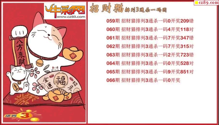 > 2026066期P3招财猫通杀一码图