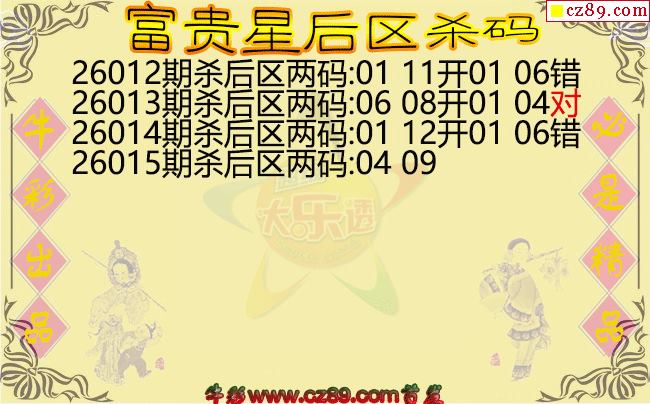 > 大乐透015期富贵星后区杀码图谜
